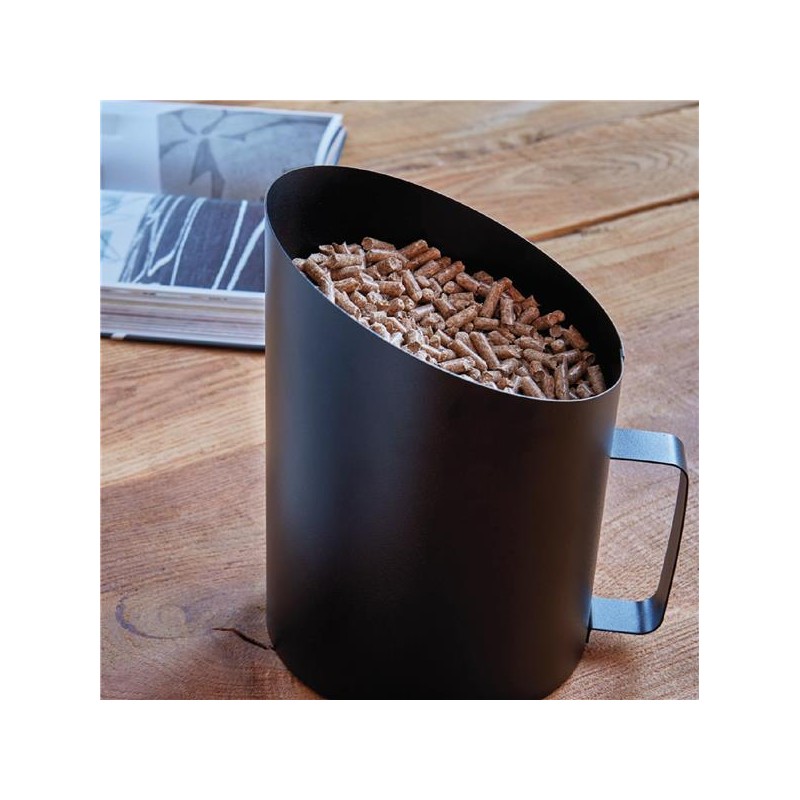 La poignée ergonomique permet une préhension facile de deux kilogrammes de granulés dans les rangement à granulés de type BLEND ou FELT, VILLA ou PALASS.